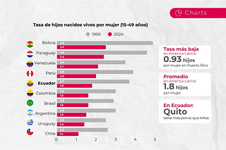 El gráfico evidencia una caída sostenida en la tasa de natalidad en Sudamérica entre 1990 y 2024. Países como Bolivia, Paraguay, Perú y Ecuador muestran…