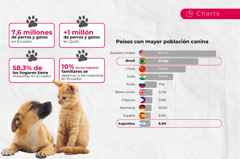En paralelo, el contexto internacional muestra la escala de este mercado, con países como Estados Unidos y Brasil liderando en población canina, lo que posiciona a la industria de mascotas como una oportunidad de negocio en expansión.
